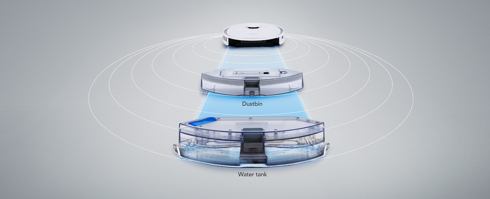 DEEBOT N3 MAX được thiết kế sáng tạo với thùng rác và thùng chứa nước có thể hoán đổi cho nhau. Thùng rác siêu lớn 600ml sẽ làm được nhiều việc hơn trong vài ngày. Bồn nước 300ml có khả năng lau lên đến 150m2 với một bồn chứa đầy