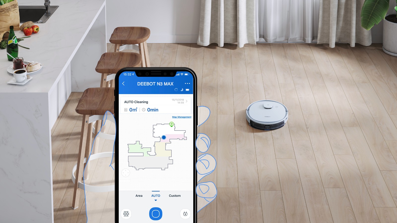 DEEBOT N3 MAX xác định thông minh loại nhà của bạn và tự động phân chia khu vực theo các phòng. Với Ứng dụng ECOVACS HOME, bạn thậm chí có thể chọn các khu vực được chỉ định để làm sạch chỉ bằng một cú nhấp chuột.
