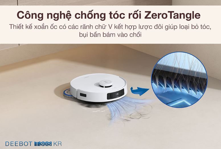 Robot hút bụi lau nhà Ecovacs T30S KR được trang bị công nghệ ZeroTangle™, một bước tiến đột phá trong việc ngăn ngừa tóc và lông thú rối vào bàn chải. Với thiết kế bàn chải lăn hình chữ V độc đáo cùng lông phẳng 21°, robot dễ dàng loại bỏ từng sợi tóc, giữ cho bàn chải luôn sạch sẽ. Hệ thống răng lược kép thông minh còn hỗ trợ kéo tóc vào khe hút trước khi chúng gây rối, giúp tối ưu hiệu suất hút bụi và kéo dài tuổi thọ của thiết bị. Đây là lựa chọn lý tưởng cho gia đình có trẻ nhỏ hoặc nuôi thú cưng, mang lại sự an tâm trong từng lần sử dụng.
