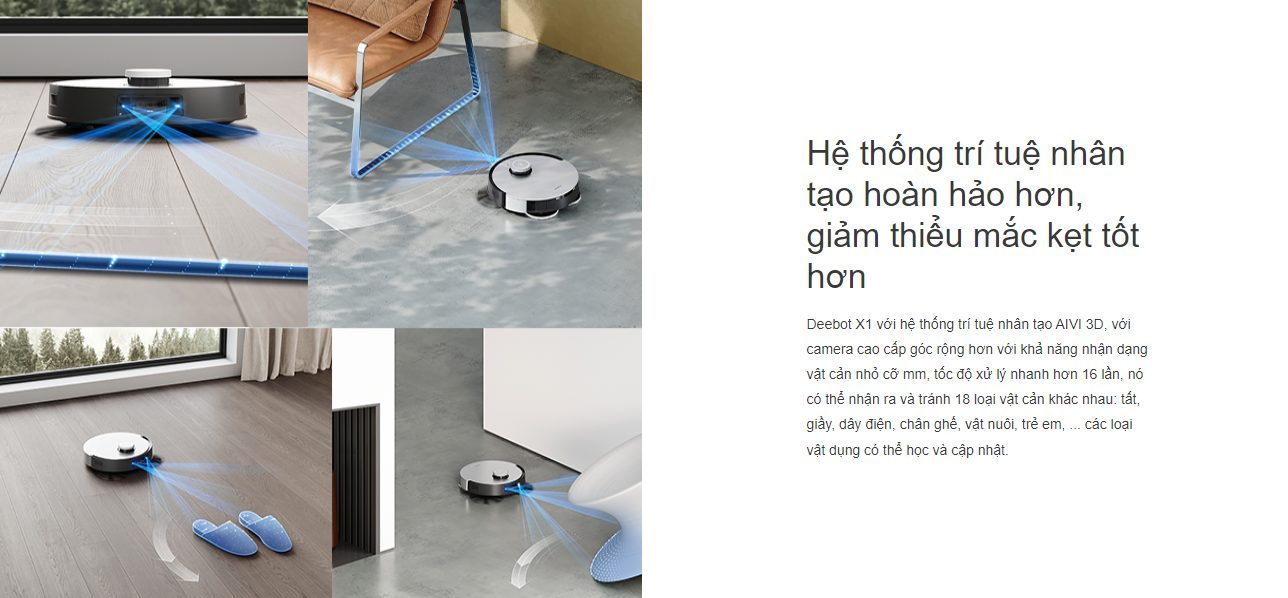 Tránh vật cản chính xác: Với thiết kế nhận diện thông minh vật nuôi, con người và các vật cản khác có trên sàn nhà, Robot có thể tự động phân tích đưa ra các bước hoạt động để tránh vật cản trong quá trình dọn dẹp