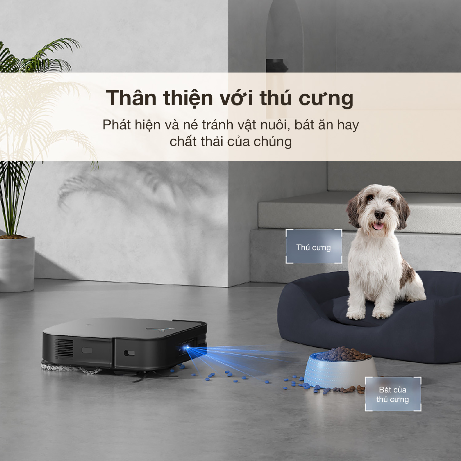 Bên cạnh đó, DEEBOT X2 COMBO được nâng cấp hỗ trợ bởi cảm biến AI, giúp robot phát hiện và tránh các chướng ngại vật bao gồm thú cưng của bạn (OTA), đĩa thức ăn và chất thải của vật nuôi. Đây là sự lựa chọn hoàn hảo cho gia đình thú cưng của bạn.