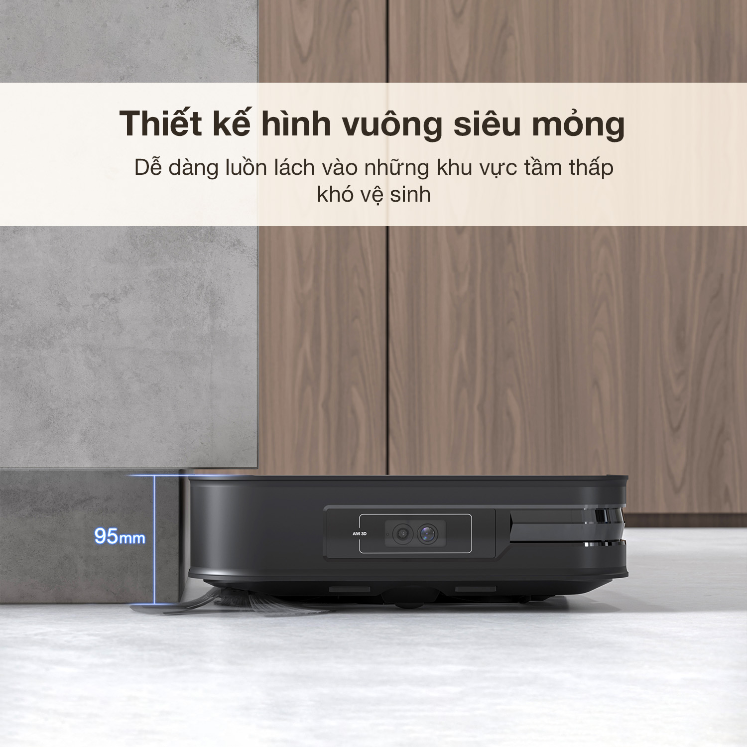 DEEBOT X2 COMBO, với thiết kế robot vuông vắn và siêu mỏng, hoàn hảo cho việc làm sạch các góc và cạnh, đảm bảo sự sạch sẽ tối đa. Đạt được phạm vi làm sạch trên một đơn vị diện tích lên tới 99,77%. Với kích thước thon gọn, chiều rộng chỉ 32cm và siêu mỏng 9,5cm giúp DEEBOT X2 COMBO dễ dàng di chuyển dưới các đồ nội thất như sofa, giường và xung quanh chân bàn ghế, với khoảng cách gầm tối thiểu chỉ 100mm.
