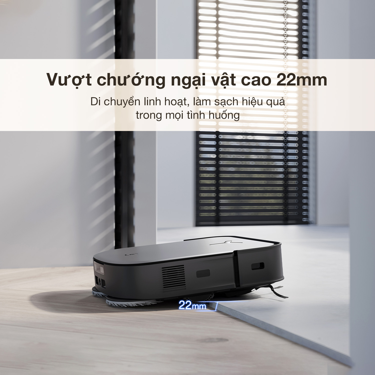 DEEBOT có khả năng tự nâng lên tới 22mm, cho phép nó vượt qua hầu hết các ngưỡng cửa một cách dễ dàng, giúp việc làm sạch trở nên thuận tiện hơn