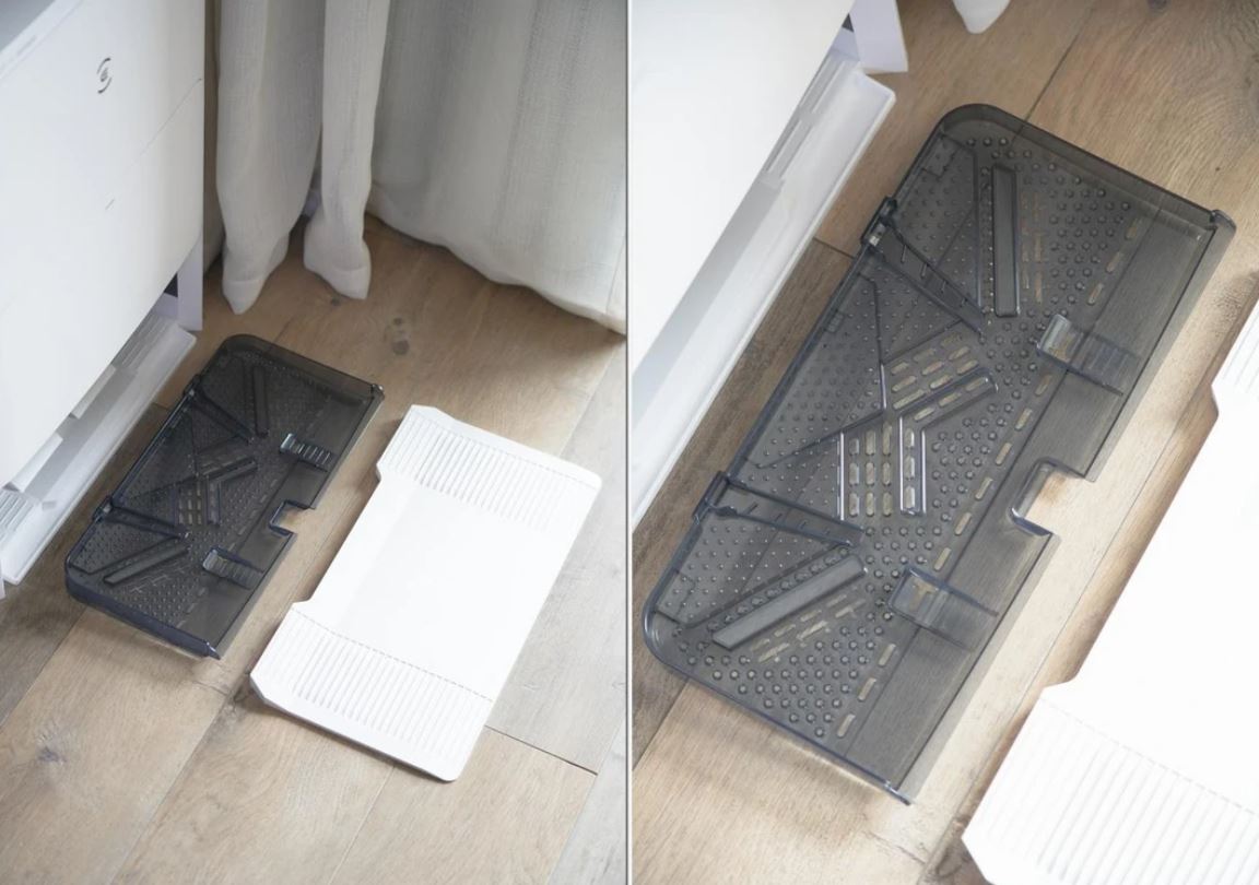 Khay vệ sinh đã được nâng cấp lên thiết kế bộ lọc cực lớn nên bạn không phải lo lắng về việc bộ lọc bị tắc trong quá trình sử dụng hàng ngày. Các quan chức cho biết nó có thể kéo dài tới 150 ngày sử dụng mà không cần bảo trì. Thiết kế dễ tháo rời giúp bạn không còn phải ngồi xổm xuống để lau chùi khi bị bẩn mà chỉ cần lấy toàn bộ ra và rửa sạch dưới vòi nước, rất tiện lợi.