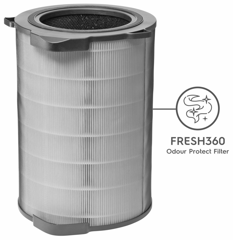 Hệ thống AirSurround độc đáo tạo ra một luồng không khí hình xoắn ốc mạnh mẽ giúp lọc khí hiệu quả hơn 4(*) lần so với thế hệ trước đồng thời đưa khí sạch đến mọi ngóc ngách trong nhà(**).
