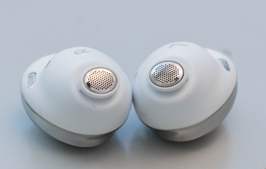 Mặt ngoài của tai nghe được làm bóng bẩy, đẹp mắt nhưng dễ bám vân tay, nhất là khi Samsung tích hợp điều khiển dạng chạm vào tai nghe này. Mặt trong sản phẩm là nhựa mờ nên chống bám bẩn tốt.
