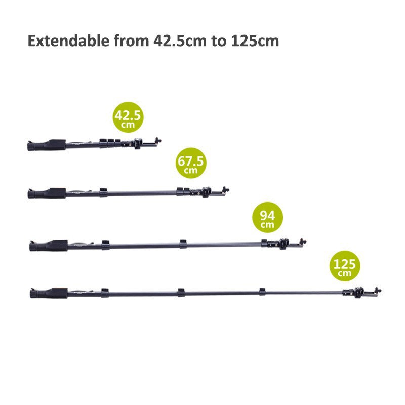 – Khoảng cách chụp ảnh tối đa lên tới 127cm với các khớp nối và khóa an toàn, chắc chắn chịu lực cao, đầu có thể xoay 180 độ, hỗ trợ tự sướng mọi góc cạnh.