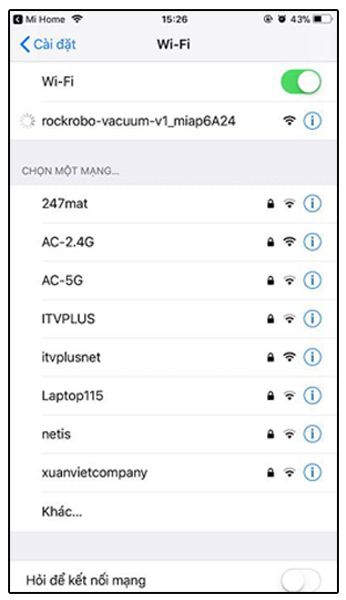 Sau đó, bạn chọn kết nối với wifi của máy hút bụi. Rồi quay lại ứng dụng Mi Home.