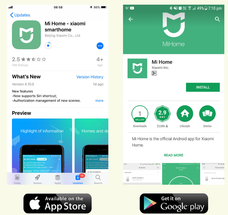 Đầu tiên bạn hãy tải và cài đặt ứng dụng Mi Home trên hệ điều hành iOS hoặc Android: