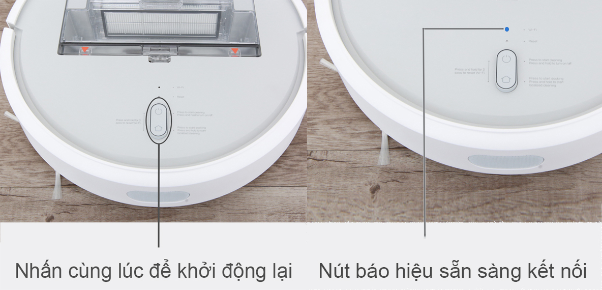 Tiếp theo, bạn cần khởi động lại robot hút bụi của mình bằng cách giữ 2 nút điều khiển cùng lúc (khoảng 3 - 5 giây).