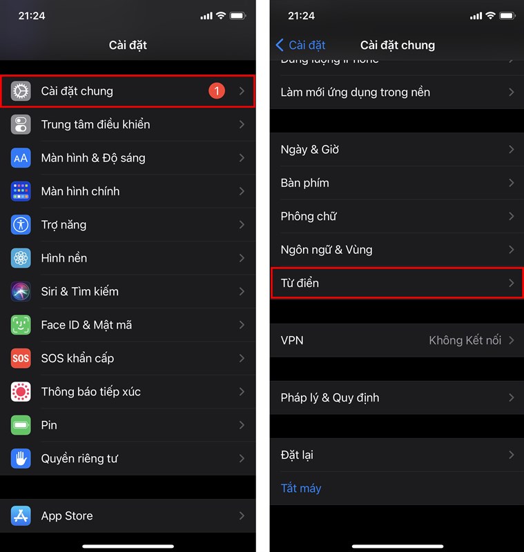 Bước 1. Để bật từ điển trên iPhone, bạn vào Cài đặt > Cài đặt chung > Từ điển.
