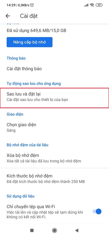 Bước 2: Bạn vào phần Sao lưu và đặt lại.