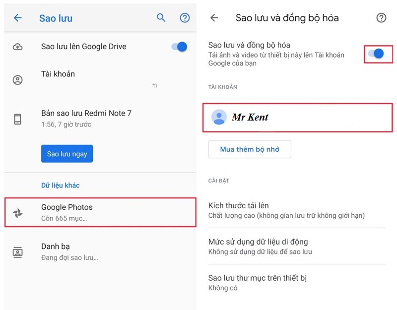 Bạn vào Google Photos trong Google Drive, bật sao lưu và đồng bộ hóa và chọn tài khoản của bạn, cuối cùng bạn chọn Sao lưu ngay.