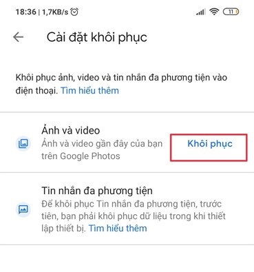 Bước 5: Chọn Khôi phục để lấy lại dữ liệu.