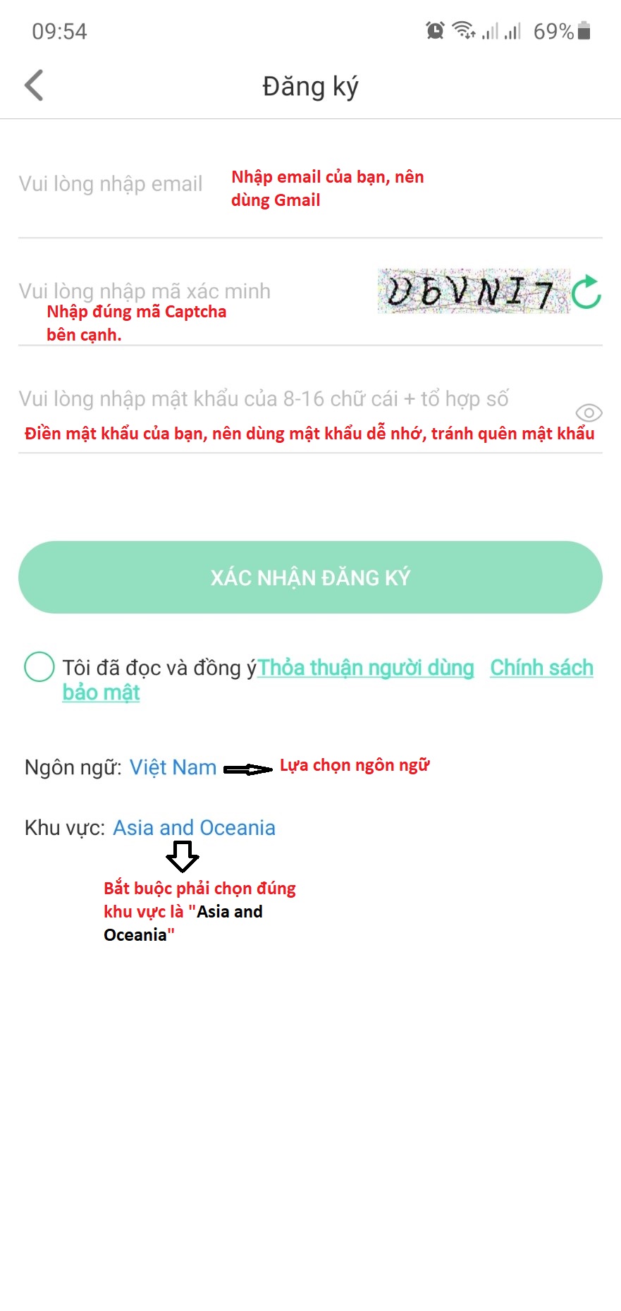 * Các bạn nên điền email là email đang sử dụng, để dễ dàng lấy lại mật khẩu trong trường hợp các bạn quên mật khẩu