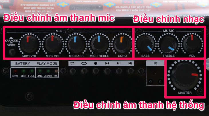 Điều chỉnh âm thanh mic: Dùng điều chỉnh mức độ âm thanh của mic khi bạn hát karaoke.