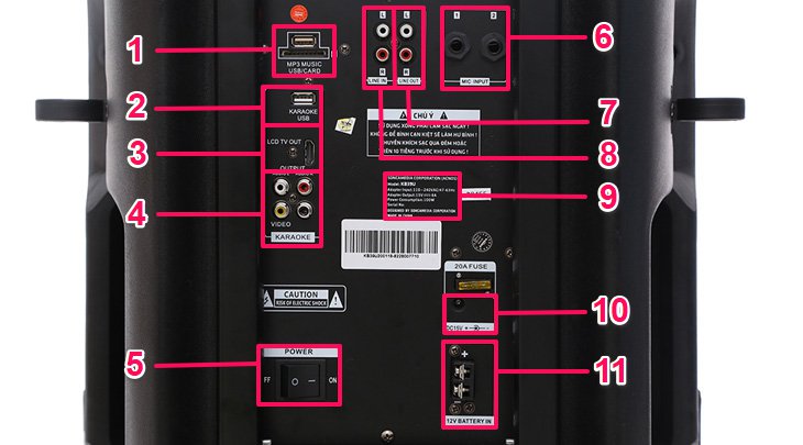 2. Cổng USB Karaoke: Kết nối USB dùng để hát karaoke trên loa.