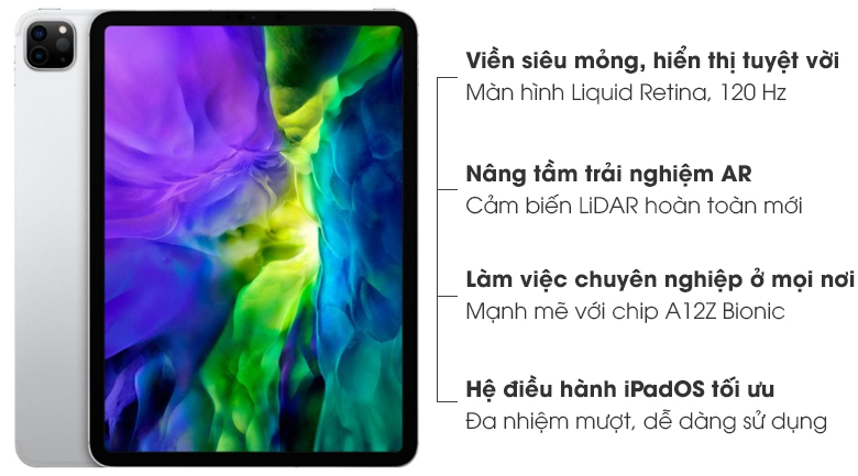 Camera chính là điểm nâng cấp mạnh mẽ và rõ ràng nhất trên chiếc iPad Pro mới này. Máy được trang bị cụm camera kép bao gồm camera góc rộng 12Mpx và góc siêu rộng 10Mpx . Bên cạnh đó là một cảm biến mới mang tên LiDAR lần đầu xuất hiện trên thiết bị Apple.