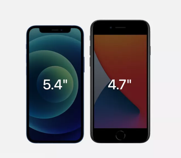 Năm nay, iPhone 12 cũng có 3 kích thước màn hình, nhưng có sự thay đổi nhỏ, bao gồm bản mini có màn hình nhỏ nhất (5.4 inch), hai bản iPhone 12 có màn hình 6.1 inch và một bản Pro Max có màn hình lên tới 6.8 inch. Trong đó phiên bản mini với màn hình 5.4 inch là bản hoàn toàn mới và cũng là bản có giá rẻ nhất, mục đích là để hướng tới đối tượng người dùng cần một chiếc máy có thiết kế nhỏ, cũng như người dùng ở phân khúc thấp hơn.