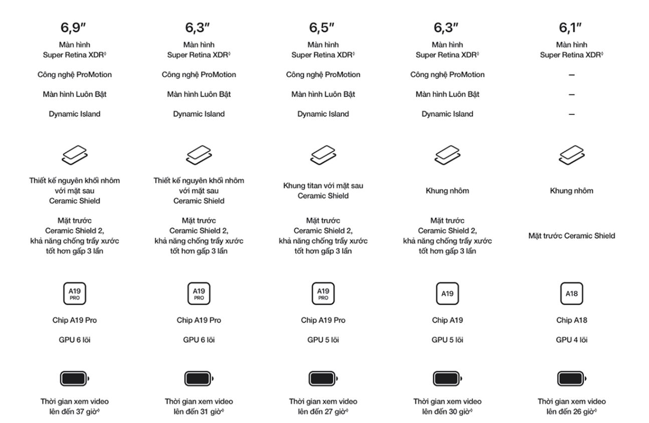A19 Pro CPU 6 lõi với 2 lõi hiệu năng và 4 lõi tiết kiệm điện GPU 6 lõi với Neural Accelerator Neural Engine 16 lõi |