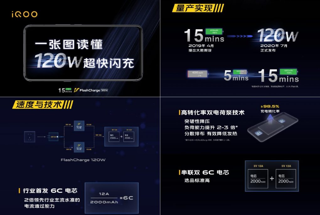 Vivo cũng đã giới thiệu công nghệ sạc nhanh FlashCharge 120W của mình tại triển lãm công nghệ Mobile World Congress Shanghai 2019. Tuy nhiên vẫn chưa có sản phẩm chính thức nào được ra mắt. Vì vậy mà công nghệ sạc nhanh 120W của iQOO có thể được coi là đầu tiên trên thế giới.