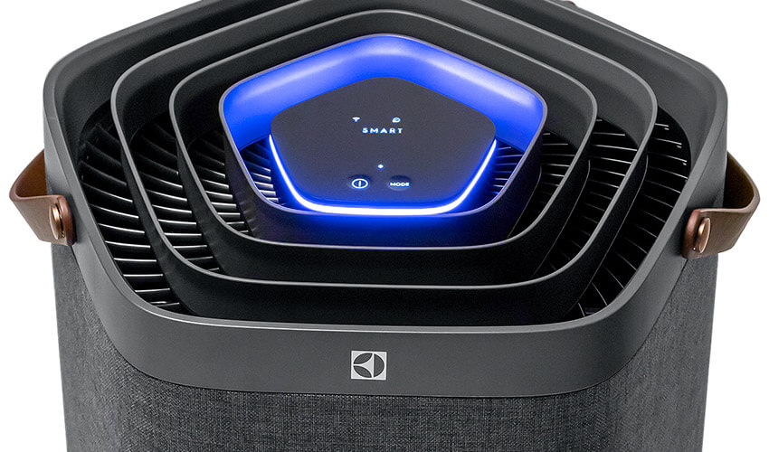 Electrolux Pure A9 có thiết kế hình trụ ngũ giác, một nửa được bọc vải, sử dụng lõi lọc HEPA 13, than hoạt tính và cả ion âm.