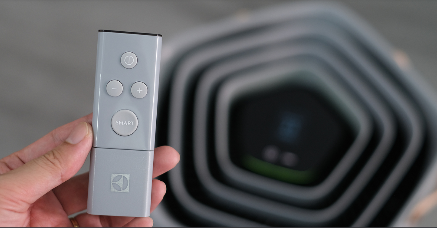 Điều khiển đi kèm sử dụng pin cúc áo với 3 chức năng tương tự khi dùng trên màn hình hiển thị trên máy. Tuy nhiên, không có nút bật riêng chế độ ion và phải điều khiển trên điện thoại.