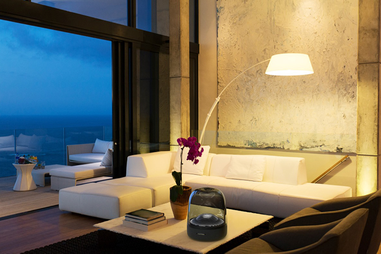 Loa Harman Kardon Aura Studio 3 có thiết kế thân máy trong suốt và ánh sáng xung quanh. Thiết kế hình vòm lạ mắt, vật liệu trong vắt cao cấp bổ sung cho màn trình diễn ánh sáng xung quanh và hiển thị hiệu ứng gợn sóng nước