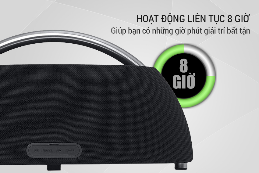 Đặc biệt, loa Bluetooth Harman có thời gian sạc 3 giờ và có thể chơi nhạc lên đến 8 giờ, giúp bạn có những giờ phút giải trí bất tận. Trang bị cổng USB có thể sạc cho các thiết bị 5V/2.1A (5V/0.5A when playing music) và thiết kế jack cắm 3.5mm sử dụng cho tất cả các sản phẩm sử hỗ trợ cổng Audio.