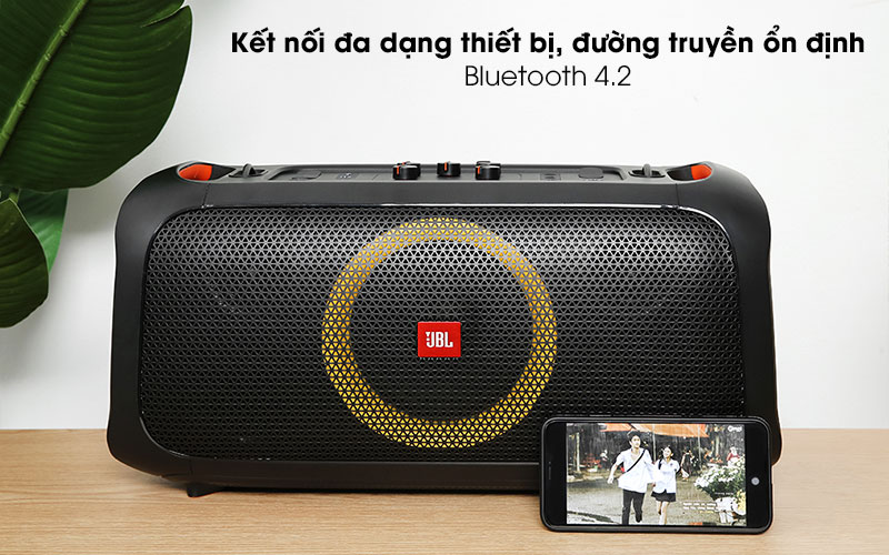 JBL Partybox On-The-Go giúp bạn truy cập các bài hát yêu thích của bạn thông qua Bluetooth 4,2, USB, AUX, hơn thế khả năng kết nối TWS (True Wireless Stereo) đơn giản với một loa cùng loại khác, giúp bạn có thể mở rộng hệ thống party của mình dễ dàng.