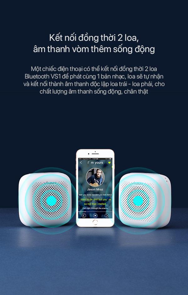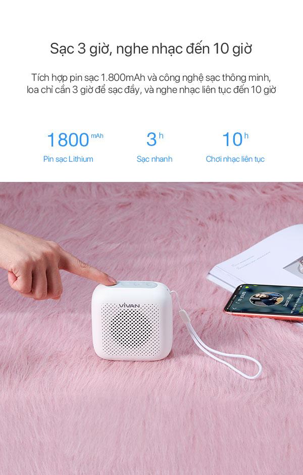 Loa TWS Bluetooth 5.0 VIVAN VS1 với kích thước nhỏ gọn, Pin 1800mAh, hỗ trợ thẻ SD & USD.