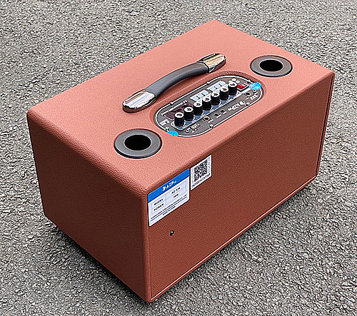 -Dòng loa xách tay vỏ gỗ, ngoài bọc da