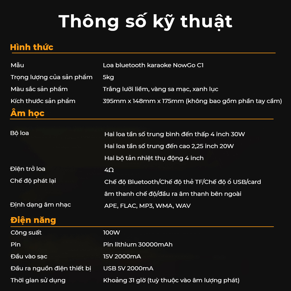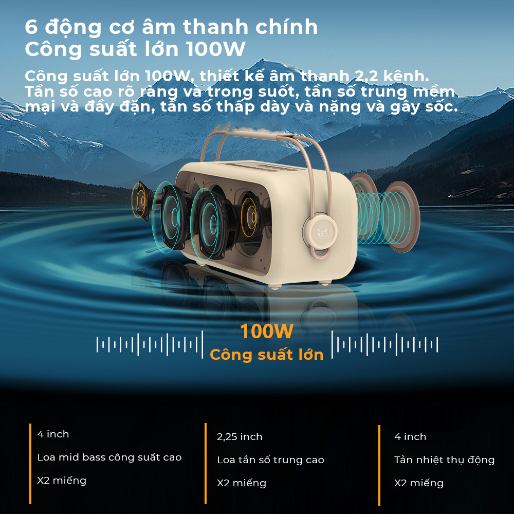 • Công suất lớn 100W, hệ thống 2.2 kênh cho chất lượng âm thanh mạnh mẽ, khuấy động mọi bữa tiệc.