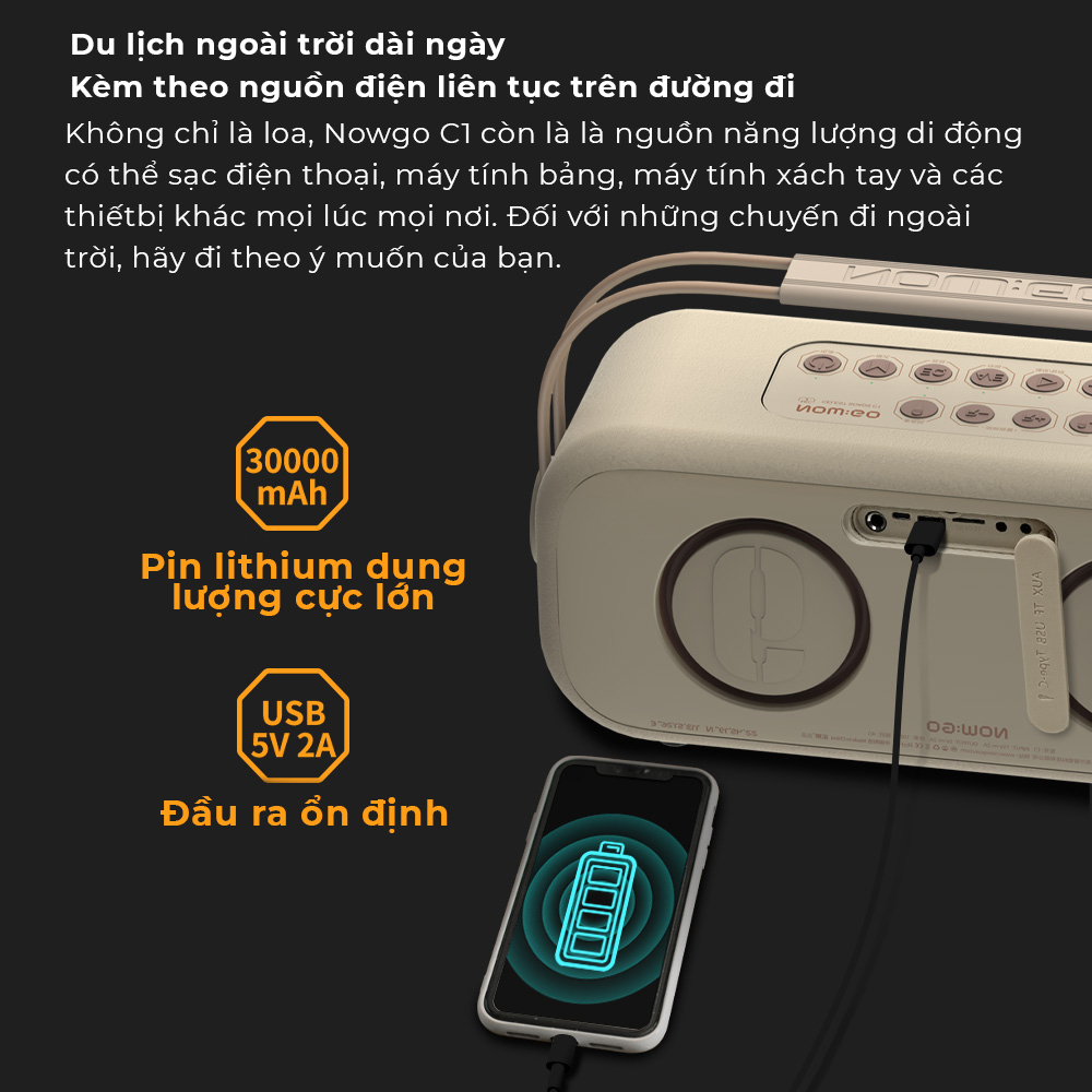 • Pin dung lượng 30000mAh, bền bỉ với hơn 30 giờ sử dụng và đồng thời là nguồn năng lượng để sạc các thiết bị thông minh.