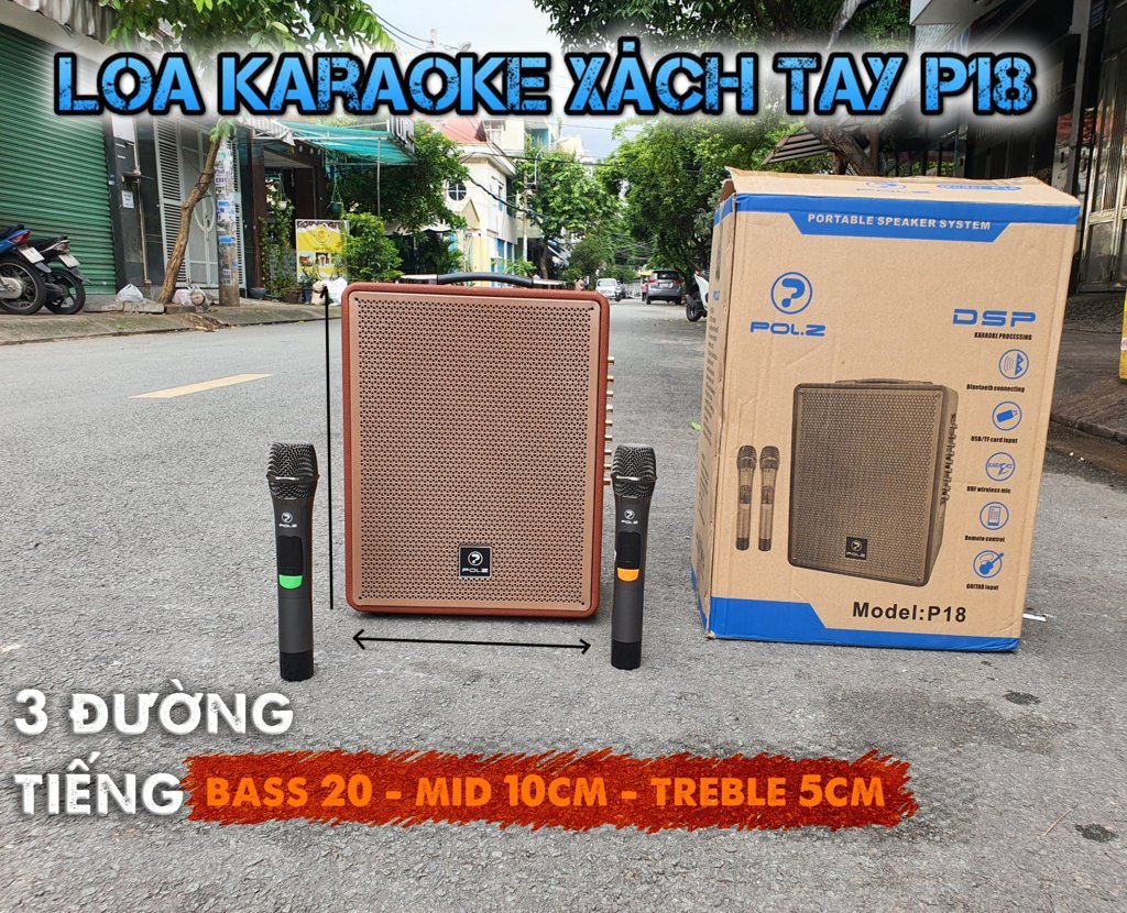 Loa xách tay POL.Z P18, mẫu loa karaoke mini có 3 đường tiếng, loa này sở hữu 3 củ loa ( bass 2 tấc, loa trung 10cm, treble 5cm) nên công suất vào khoảng 60W n( rất mạnh so với kích cỡ loa), vỏ ngoài bằng gỗ, kiểu dáng cũng đơn giản nhưng chắc chắn, âm bass nghe khá tốt. Loa POLZ P18 sử dụng 2 micro UHF hút âm tốt, chức năng ưu tiên mic khi MC/ hội họp, hát nhạc offline từ usb/ TF card, làm loa ngoài cho các thiết bị....