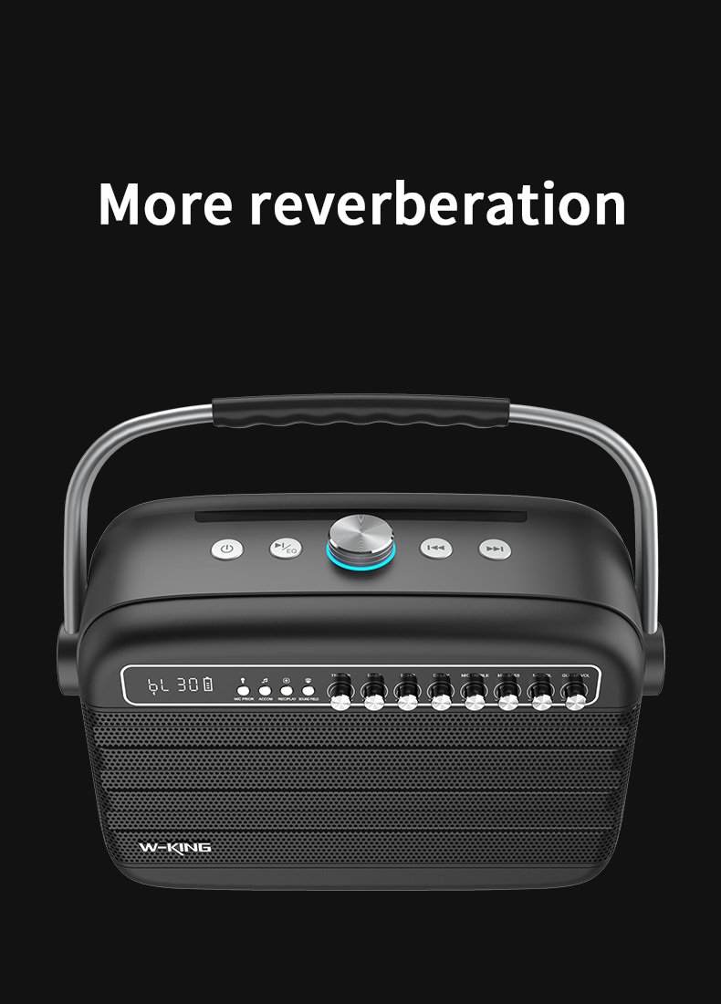 Hệ thống điều khiển âm thanh của W-king K9 chính hãng cho nhiều trải nghiệm âm nhạc thú vị hơn. Bạn có thể điều chỉnh âm trầm, âm trung, âm cao, Echo, Delay,… 1 cách dễ dàng, chuyên nghiệp để có 1 giọng hát hay nhất.