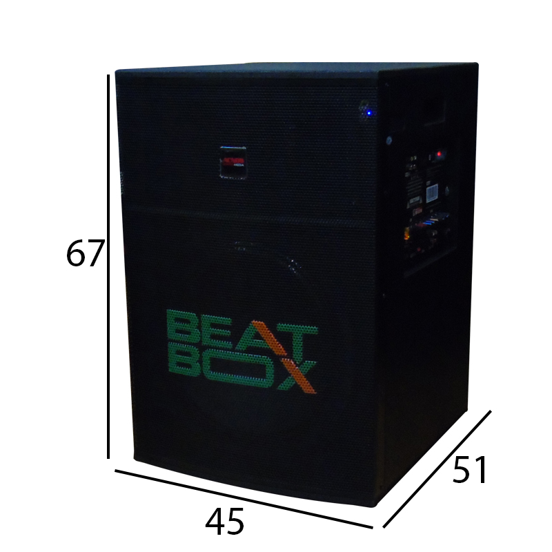 Ngay trung tâm bảng mạch của Beatbox KB41 người dùng có thể lập tức thấy ở bên hông một màng hình đèn led ngay bên dưới là cổng USB/SD, các phím chỉnh trong quá trình sử dụng USB, công tắt nguồn và cổng sạc với nguồn điện 220V.
