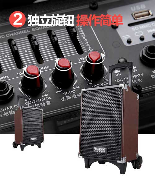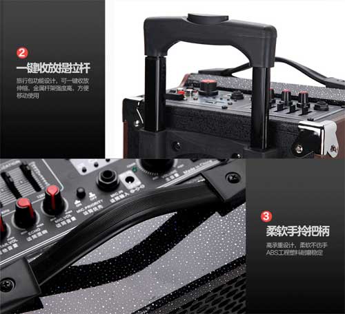 Thiết kế nhỏ gọn chỉ năng 9.5 kg nên rất dễ di chuyển ngay cả đối với bạn nữ. Với những đường nét được gia công một cách tỉ mỉ. Kèm theo đó là tông màu gỗ làm chủ đạo giúp cho chiếc loa kéo temeisheng Q8S thêm phầm bắt mắt và cao cấp.