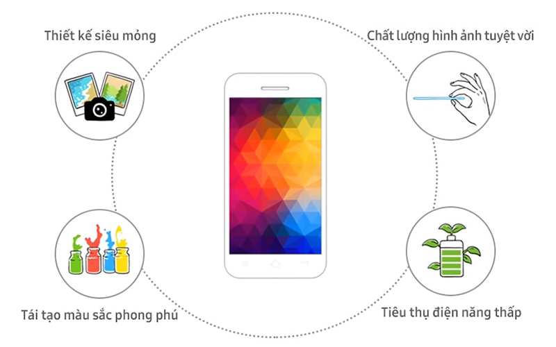 Màn hình AMOLED cũng giúp giảm khối lượng của điện thoại đáng kể, nhẹ hơn và sở hữu nhiều cải tiến vượt trội so với các thế hệ màn hình cũ như LCD, TFT,...