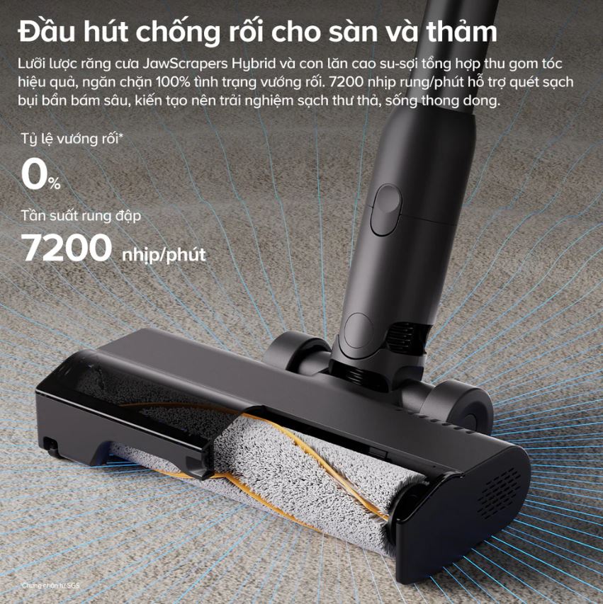 Một trong những tính năng đột phá giúp Roborock H60 Ultra trở nên vượt trội so với các đối thủ chính là đầu hút chống rối JawScraper Hybrid độc quyền. Nếu bạn từng khó chịu vì tóc và lông thú cưng quấn chặt vào con lăn máy hút bụi, thì đây chính là giải pháp bạn đang tìm kiếm: