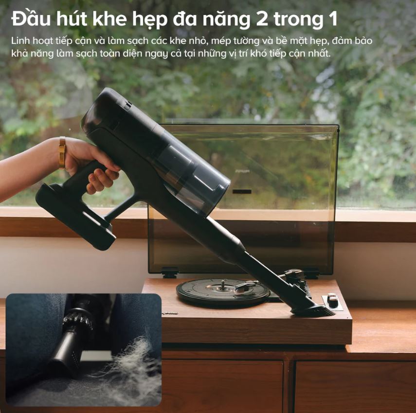 Thời gian hoạt độngLên đến 90 phút (ở chế độ Eco) sau mỗi lần sạc đầy. Thời lượng này có thể thay đổi tùy theo chế độ hút và bề mặt vệ sinh.