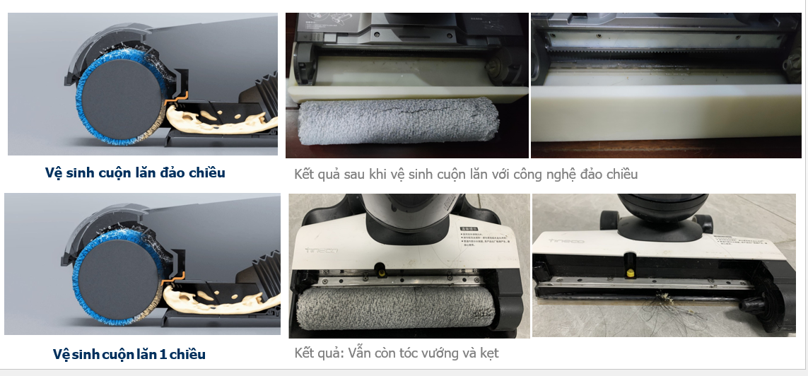 Tính năng giặt cuộn lăn đảo chiều độc đáo Khi vệ sinh, cuộn lăn sẽ di chuyển theo chiều kim đồng hồ và ngược lại để tối ưu hiệc làm sạch,