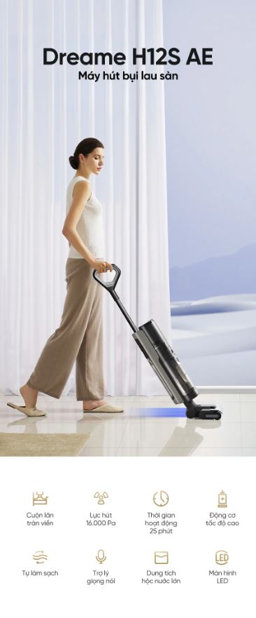 Máy lau sàn Dreame H12S AE là thiết bị nâng cấp của H12 với công suất lên tới 16.000 Pa, xử lý hoàn hảo cả vết bẩn khô và ướt. Con lăn tràn viền dọn sạch bụi bẩn ở cả những khu vực khó xử lý như góc tường, chân bàn ghế... đều có thể được xử lý cực kỳ đơn giản và hiệu quả.