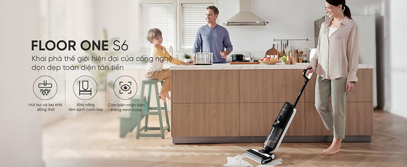 Máy hút bụi lau sàn Tineco Floor One S6 là dòng máy hút bụi kết hợp lau sàn thông minh với thiết kế trẻ trung, hợp thời, trang bị hàng loạt công nghệ hiện đại như: cảm biến iLoop độc quyền, tự động điều chỉnh lực hút kết hợp cùng tốc độ con lăn và tùy chỉnh lượng nước phù hợp, hoạt động tối đa liên tục tới 35 phút, 3 chế độ làm sạch linh hoạt giúp dọn sạch mọi góc cạnh tăng cường 2 mặt, lau nhà sạch sẽ với con lăn cọ rửa liên tục 450 vòng/phút,... Tineco Floor One S6 sẽ giúp công việc dọn dẹp nhà cửa của bạn trở nên dễ dàng hơn bao giờ hết