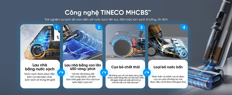 Bình chứa nước sạch và bẩn của máy hút bụi Tineco One S6 được thiết kế tách biệt hoàn toàn giúp sàn nhà được làm sạch liên tục bằng nước tinh khiết, khác biệt với những máy thông thường. Con lăn hoạt động với tốc độ quay 450 vòng/phút mang đến khả năng vệ sinh sàn nhà hiệu quả. Hệ thống cao nổi đã được nâng cấp để luôn giữ cho con lăn sạch sẽ, đảm bảo hiệu quả dọn sạch toàn diện, cải thiện hiệu suất và tuổi thọ con lăn tăng tới 25%.