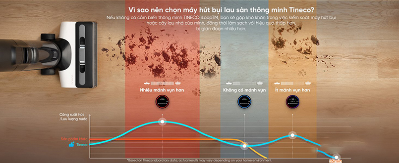 Máy hút bụi Tineco Floor One S6 trang bị 3 chế độ lực hút tùy chỉnh phù hợp theo độ bẩn và nhu cầu làm sạch khác nhau.