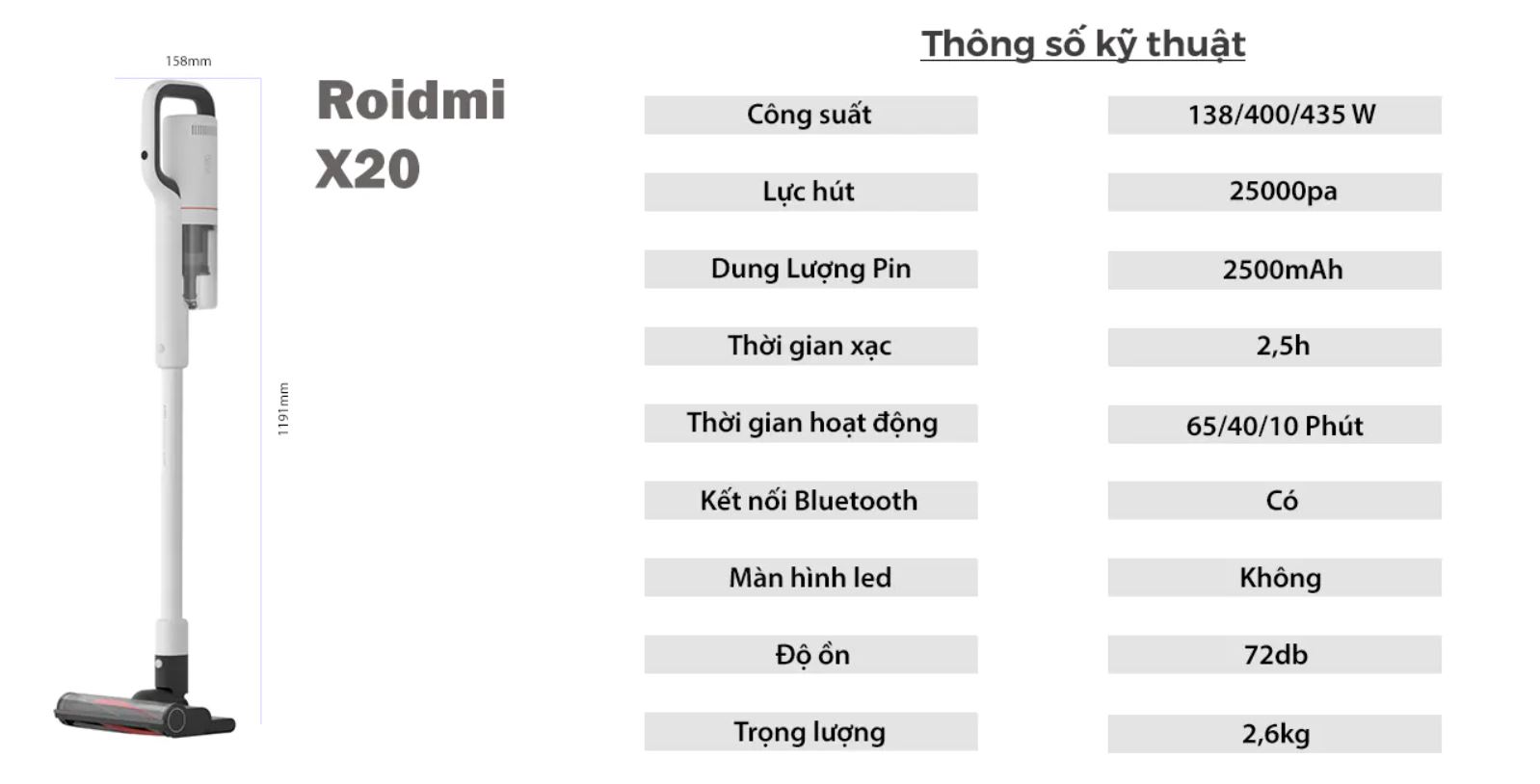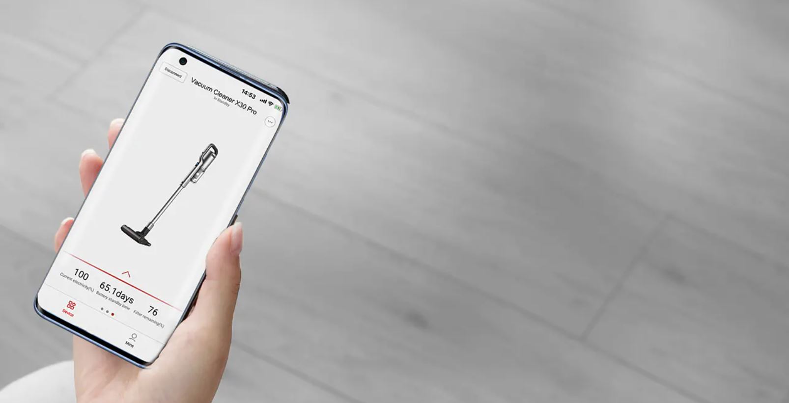 Máy hút bụi lau nhà cầm tay Roidmi X20 được kết nối với điện thoại qua Bluetooth với Roidmi App bạn có thể kiểm soát hoàn toàn máy hút bụi của bạn: dung lượng pin, lực hút công suất sử dụng, thời gian hút, tình trạng thùng rác, các thông báo nhắc nhở thay thế vệ sinh bộ lọc và các thông báo khác về tình trạng máy.