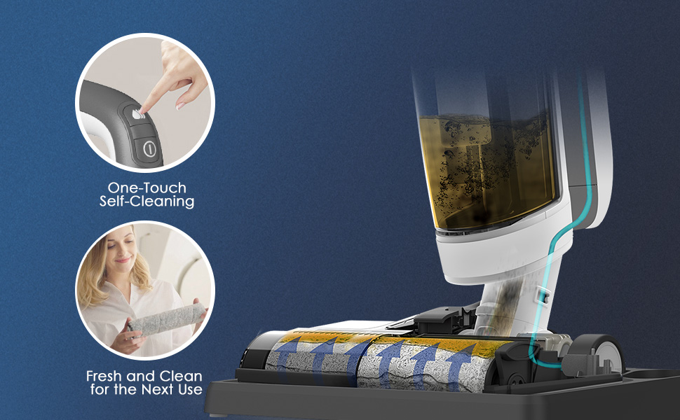 Làm sạch trục lăn là một công việc phức tạp với các loại máy hút ẩm khác, nhưng với iFloor Breeze thì không. Chỉ với một nút bấm là tất cả những gì cần thiết để kích hoạt chức năng tự làm sạch. Con lăn cũng như ống được rửa bằng nước sạch và chất tẩy rửa, vì vậy nó luôn sẵn sàng cho lần làm sạch mới tiếp theo.