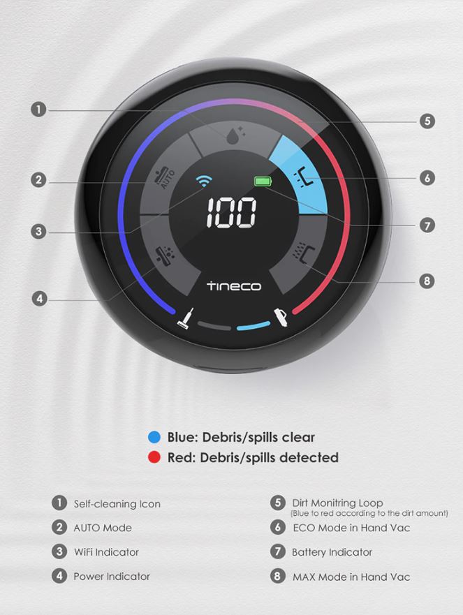 Theo dõi tình trạng bụi bẩn với màn hình iLoop thông minh. Chuông iLoop trên màn hình LED đủ màu chuyển từ đỏ sang xanh khi sàn nhà của bạn sạch sẽ.