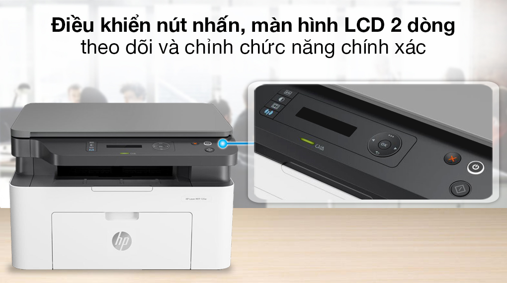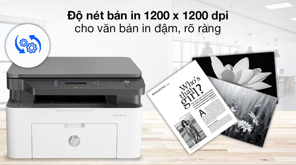Máy in HP Laser Trắng đen đa năng In scan copy LaserJet 135a (4ZB82A) gây ấn tượng với kiểu dáng đơn giản, đa chức năng, khay chứa lớn, in liên tục, đáp ứng nhu cầu trong văn phòng, gia đình.
